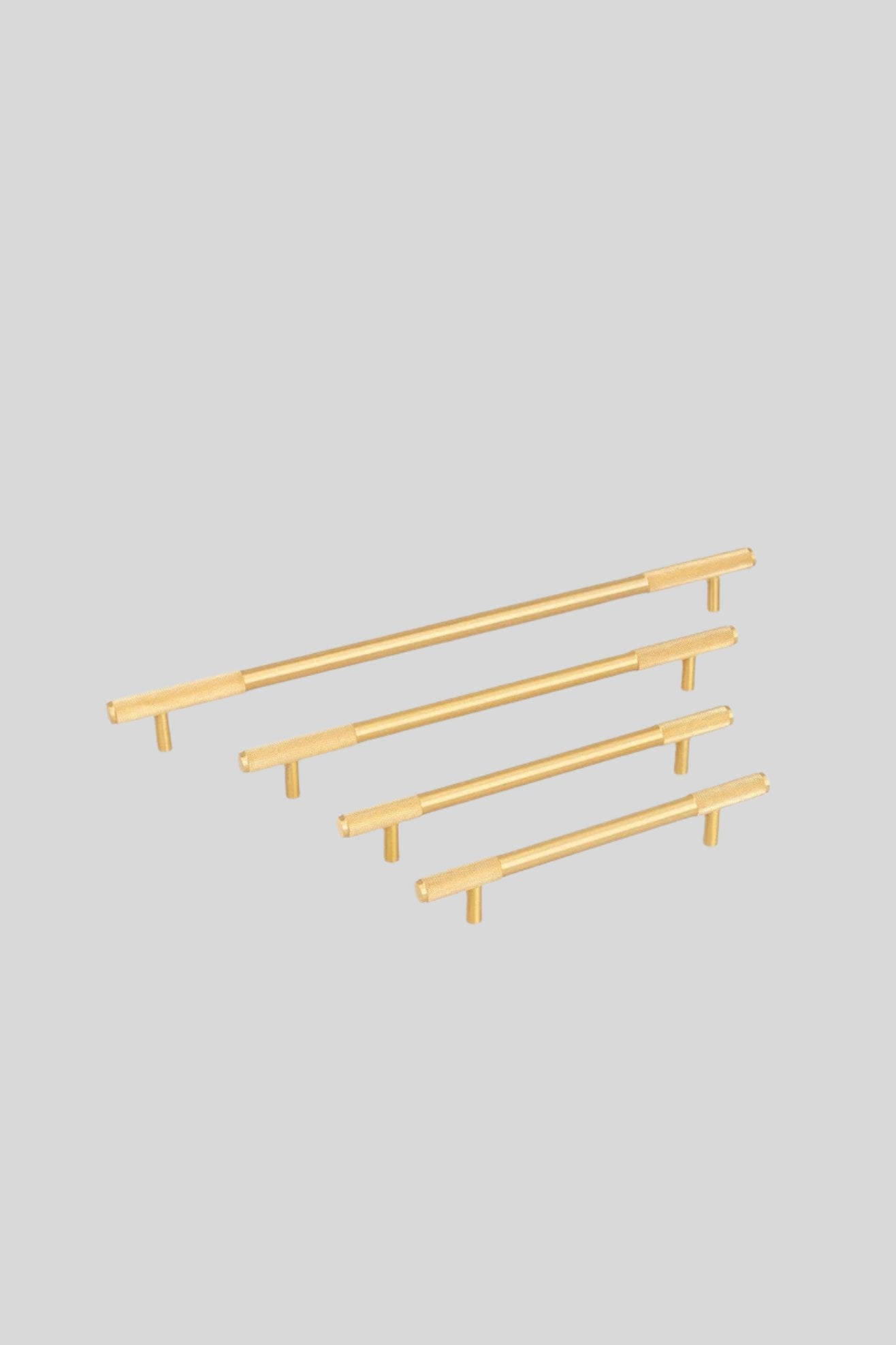 Our Kensington knurled T-Bar handles in matt brass finish are tooled from 100% solid brass, the texture catches the light and adds a luxury finishing touch to any home interior.